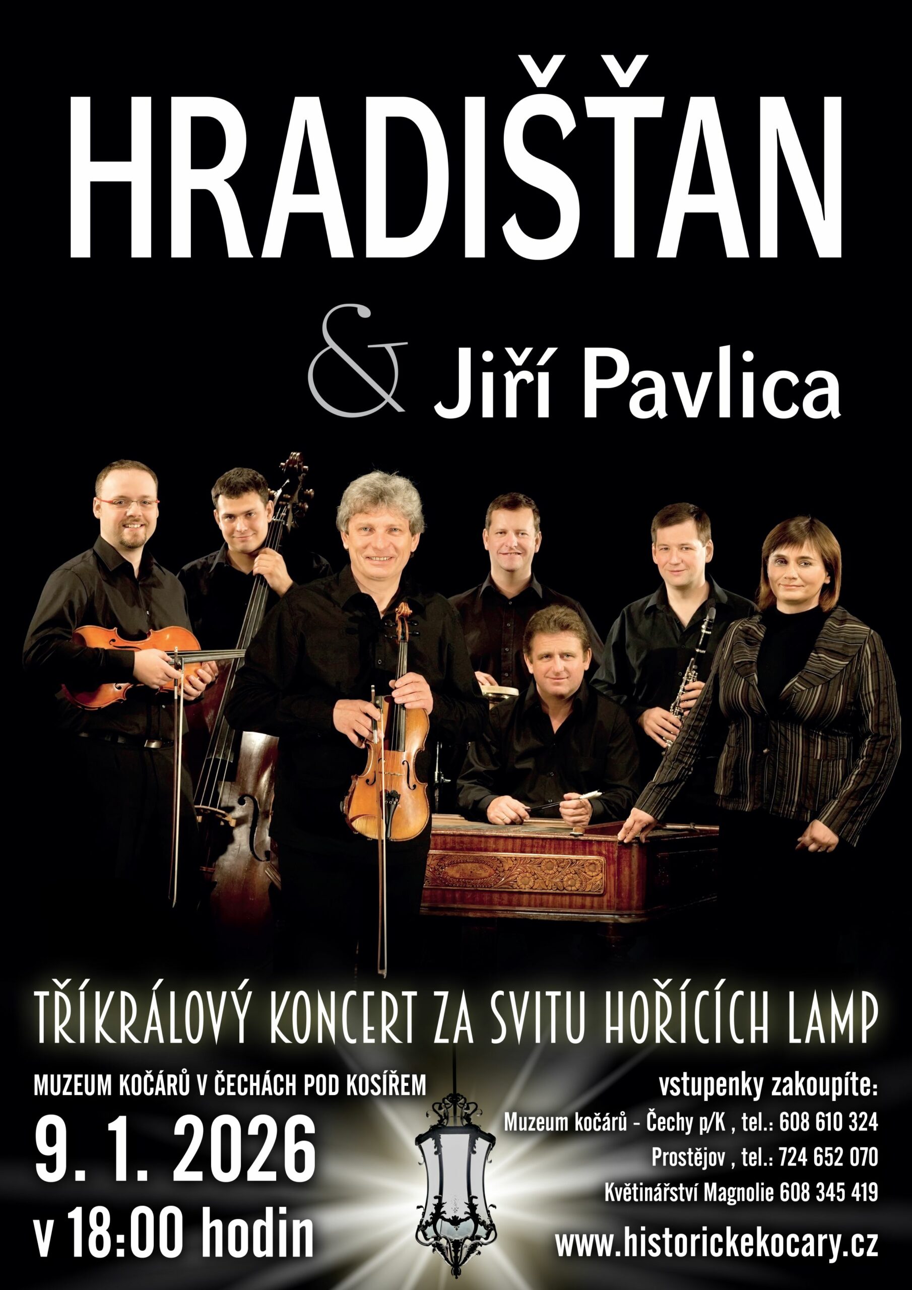 Při svitu hořících luceren a rozsvíceného největšího kočáru prožijeme nádhernou atmosféru Tříkrálového koncertu Jiřího Pavlici a Hradišťanu.